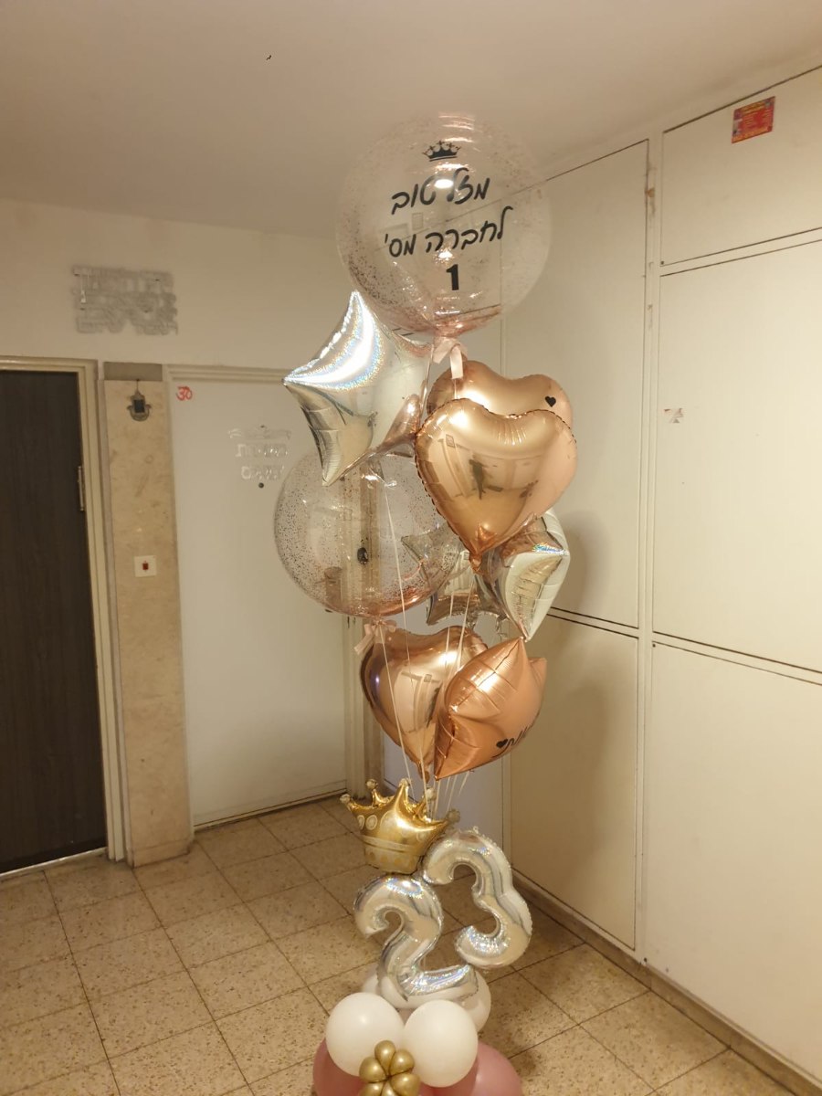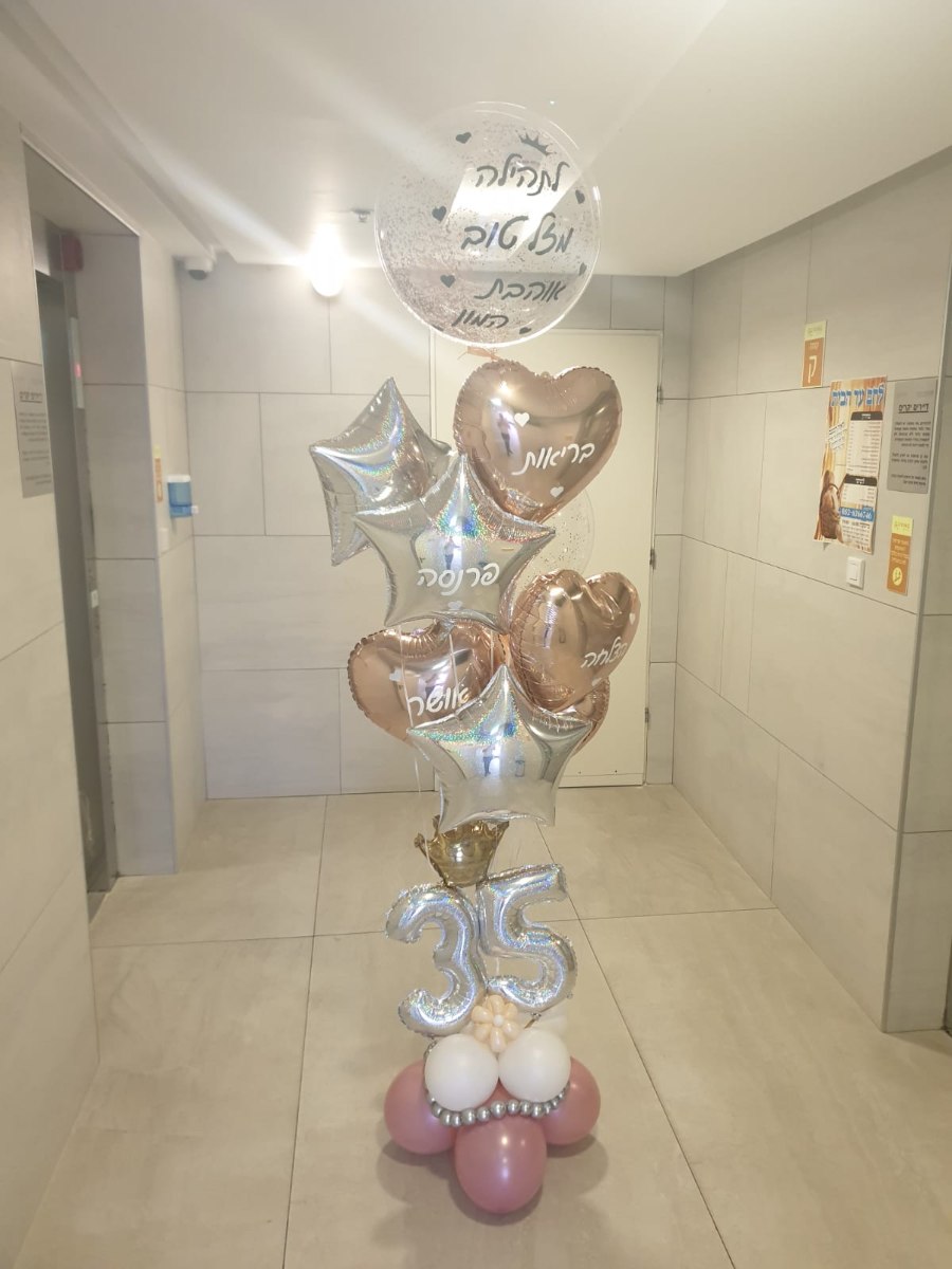 המעמד כולל ספרות מעוצבות, בלון שקוף ענק עם הקדשה, שילוב בלונים בתחתית, בלוני לבבות וכוכבים עם הקדשות ( בריאות, אושר, הצלחה, פרנסה, שפע )