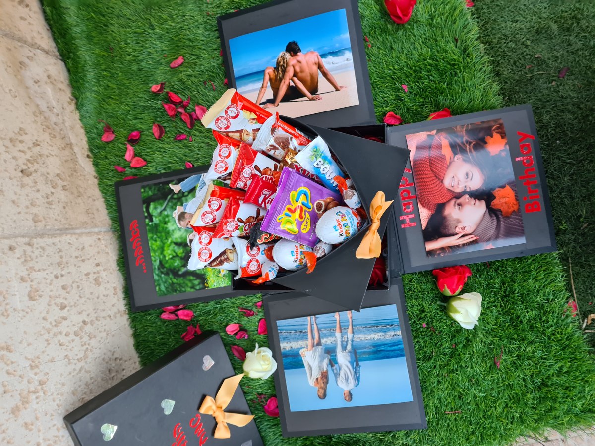 קופסא מתפוצצת - תמונות & שוקולד & פרחים